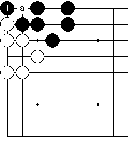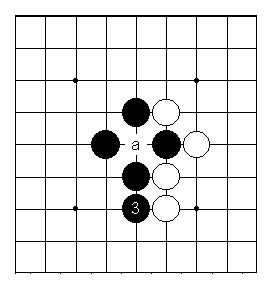 Diagramme 9: Deuxième possibilité : Noir peut aussi jouer 3 ailleurs qu’en a.