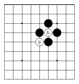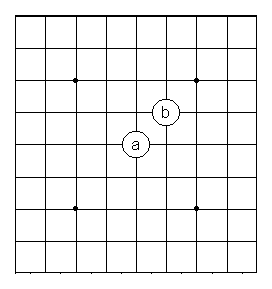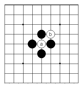 Diagramme 2 : Les pierres a et b peuvent être capturées séparément. Elles ne font pas partie de la même chaîne.