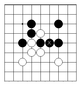 : En jouant le coup x, Noir protège sa pierre en atari.